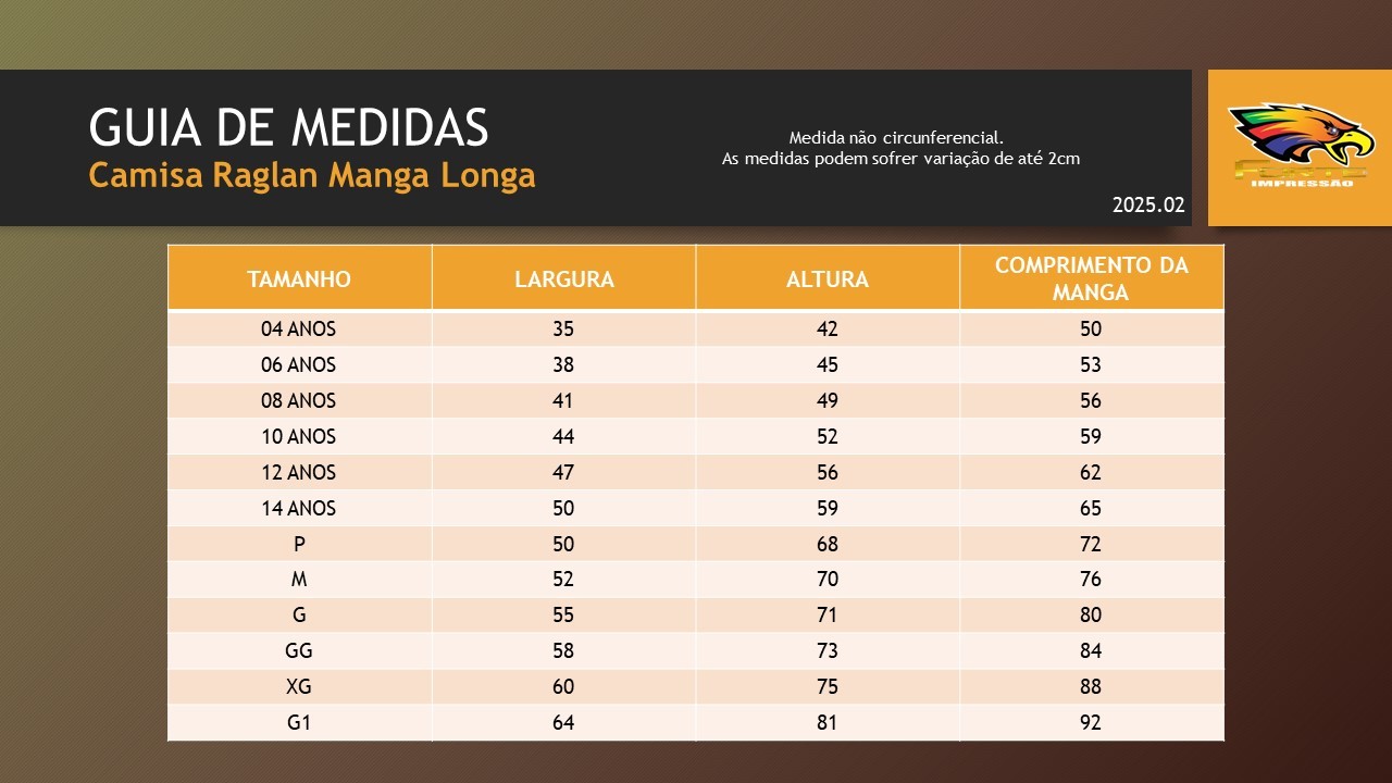 Tamanhos: Infantil ao G1 - (Dry Fit UV50 - Helanca - Poliéster)