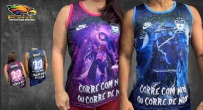 Muito utilizada para personalizar abadás e uniformes esportivos, a sublimação total é um processo que transfere uma imagem impressa para o tecido, cobrindo totalmente a camisa.