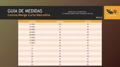 Tamanhos: Infantil ao G1 - Masculina (Dry Fit UV50). É composto por camisa e short.
